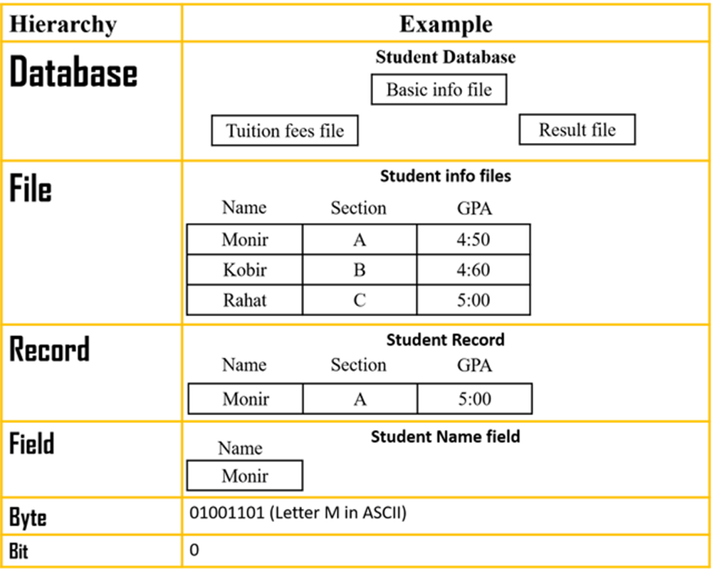 বিট হতে ডেটাবেজ পর্যন্ত পর্যায়ক্রমিক ধারাকে ডেটা সংগঠন বলে।