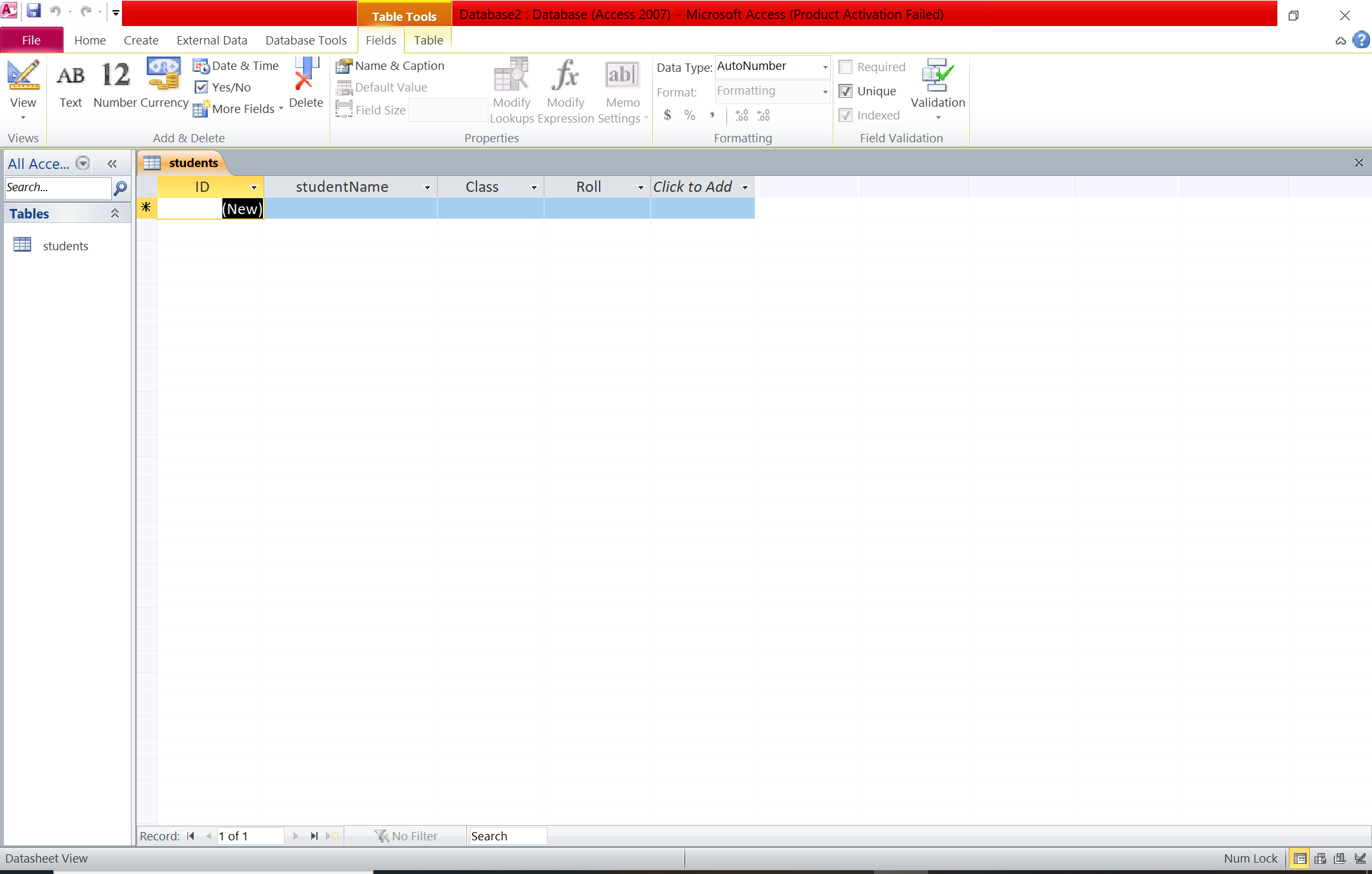 ১. Datasheet View তে যাই (View → Datasheet View)।