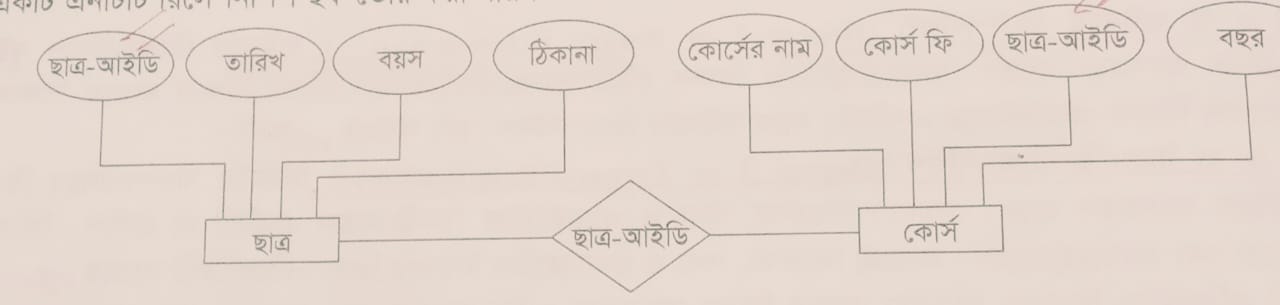এনটিটি সেটের মধ্যে ছাত্র আইডি একটি কমন অ্যাট্রিবিউট। এ কমন অ্যাট্রিবিউট এর উপর ভিত্তি করে এন্টিটি সেটদ্বয়ের মধ্যে রিলেশন প্রতিষ্ঠা করা যায়।