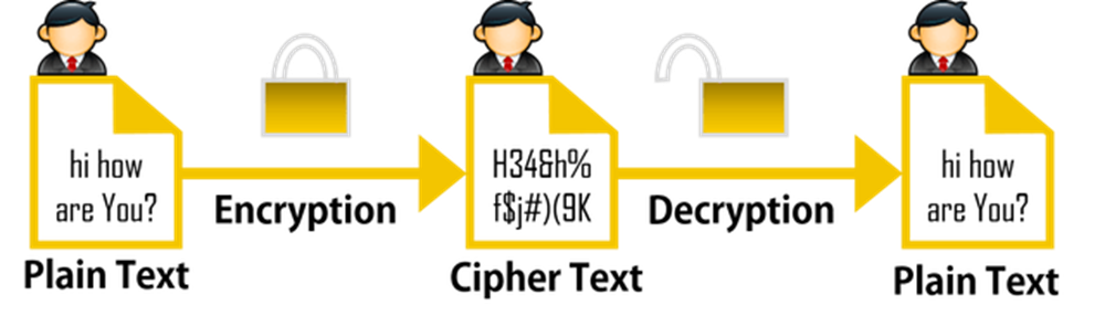 যে প্রক্রিয়ায় প্লেইনটেক্সটকে পরিবর্তন করে ছাইফারটেক্সট তৈরি করা হয় তাকে এনক্রিপশন বলে। যে প্রক্রিয়ায় ছাইফারটেক্সটকে পরিবর্তন করে পুনরায় প্লেইনটেক্সট তৈরি করা হয় তাকে ডিক্রিপ্টশন বলে। উৎস ডেটাকে এনক্রিপ্ট করে পাঠালে প্রাপককে ঐ ডেটা ব্যবহারের পূর্বে ডিক্রিপ্ট করতে হয়। প্রেরক এবং প্রাপককে যথাক্রমে এনক্রিপ্ট এবং ডিক্রিপ্ট করার পদ্ধতি/ অ্যালগরিদম জানতে হয়।