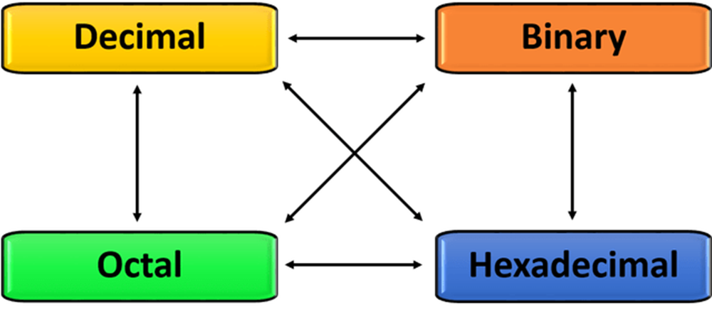 নন-ডেসিমেল অর্থাৎ বাইনারি, অক্টাল ও হেক্সাডেসিমেল সংখ্যাগুলোর মধ্যে নিম্নরুপে পারস্পারিক রূপান্তর করা যায়-
