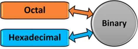 বাইনারি থেকে অক্টাল বা হেক্সাডেসিমেল অথবা অক্টাল বা হেক্সাডেসিমেল থেকে বাইনারিতে রুপান্তর করতে আমরা বিট গ্রুপিং পদ্বতি ব্যবহার করতে পারি।